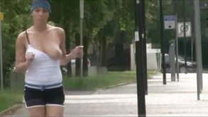 Softcore workout video with big naturals babe flashi...