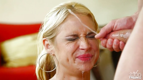 Glam blonde mom takes a sperm shower in a POV action