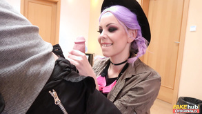 Naughty Girl With Violet Hair Is Glad To Whip Out Co...